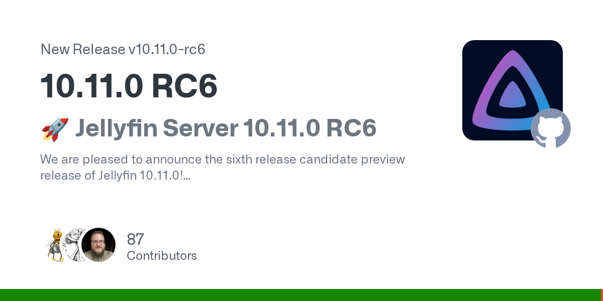 arrow-up1112arrow-down1external-linkJellyfin 10.11.0 RC6plus-squaregithub.comMountaineer@aussie.zoneEnglish · 1 month agomessage-square22fedilink
