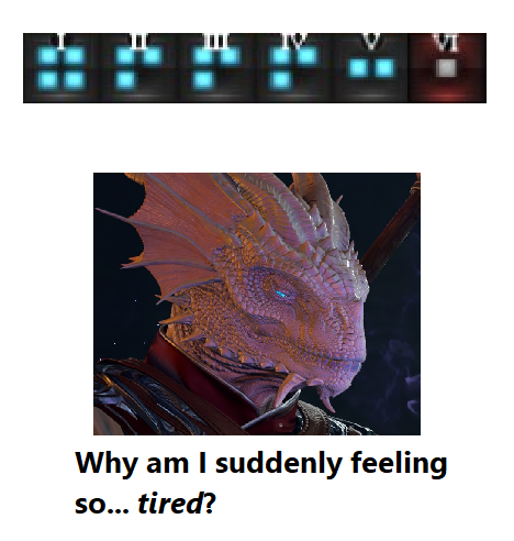 minus-squareStamets@lemmy.worldOPlinkfedilinkEnglisharrow-up3·2 months agoFrom what I can tell, its having a limited use ability or spell slot used that you cannot regain via long rest
