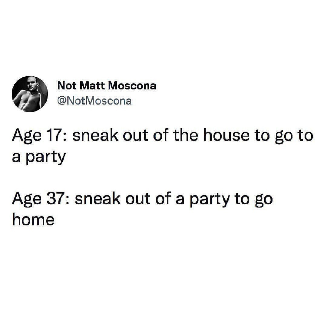 Age 42: sneak out of my own party to go to bed
