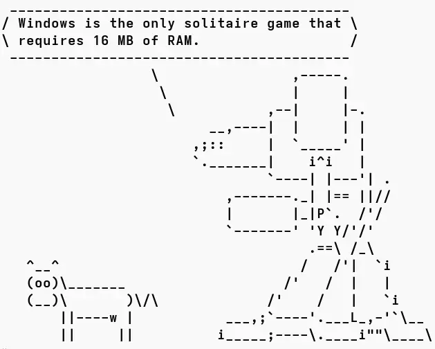 Youngins. They’re talking about the entirety of Windows and calling it all a solitaire game. EG - Windows 98’s minimum requirement was 16 MB, and 95’s was 4 MB.