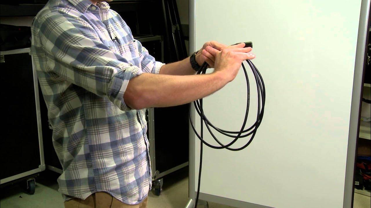 Nah. Just grab the audio cable by the end and tightly wrap it around your elbow and hand. It’s super fast. Then tie the other end around the middle of the loop to hold it all together.