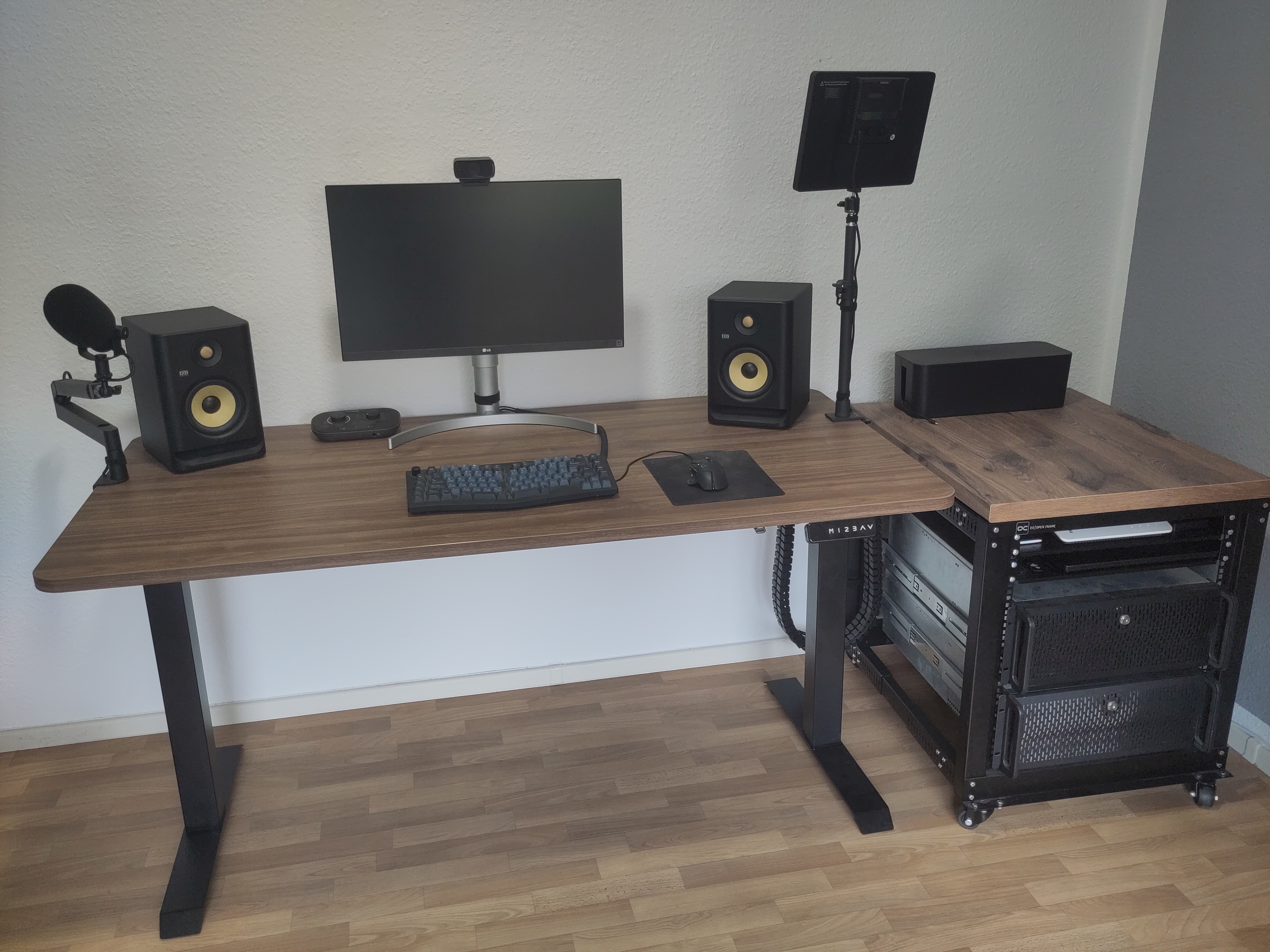 The cable sleeve joining the cables from the keyboard and mouse and then going around the monitor stand looks soo smooth.