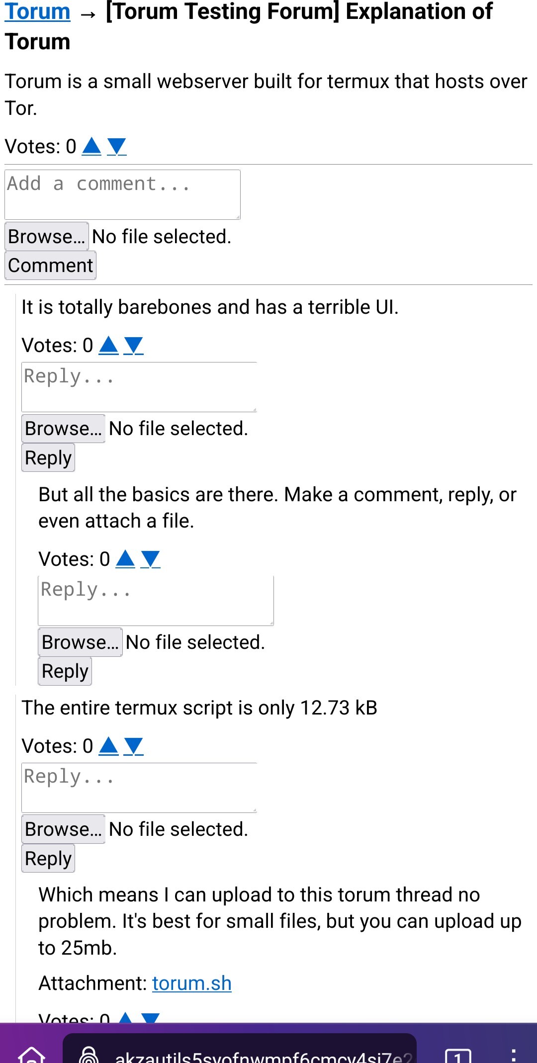 hereforawhile@lemmy.ml to Selfhosted@lemmy.worldEnglish · 11 hours agoI present: Torum! A crappy yet functional bearbones selfhosted forum site for termux.lemmy.mlimagemessage-square11fedilinkarrow-up194arrow-down16file-text