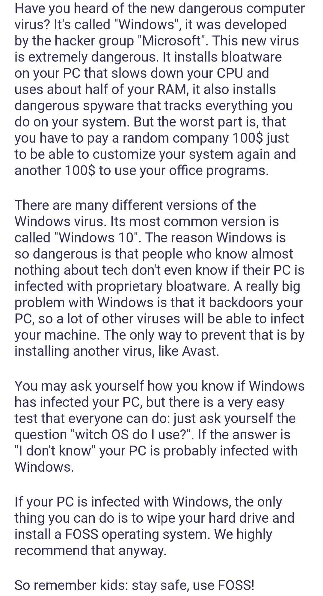 (I wonder if anyone wrote up one of these for MS-DOS back in the pre Win9X era. That’d be interesting just to see the roots of the copypasta, lol.)